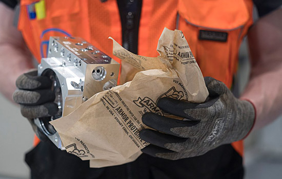 Nuestro papel kraft con pH neutro y tecnología VCI ofrece una barrera de defensa superior contra la corrosión. La clave de su eficacia es que está impregnado por ambas caras, lo que duplica la protección y garantiza que sus piezas metálicas se mantengan intactas durante años, ya sea en proceso, almacenamiento o transporte