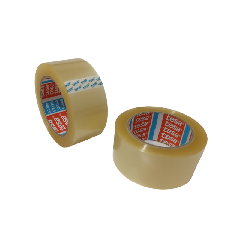tesa® 53380 cinta autoadhesiva para empaque, basada en soporte de polipropileno bi-orientado de 25 µm y adhesivo acrílico sensible a la presión. Es una cinta de embalaje de uso industrial.