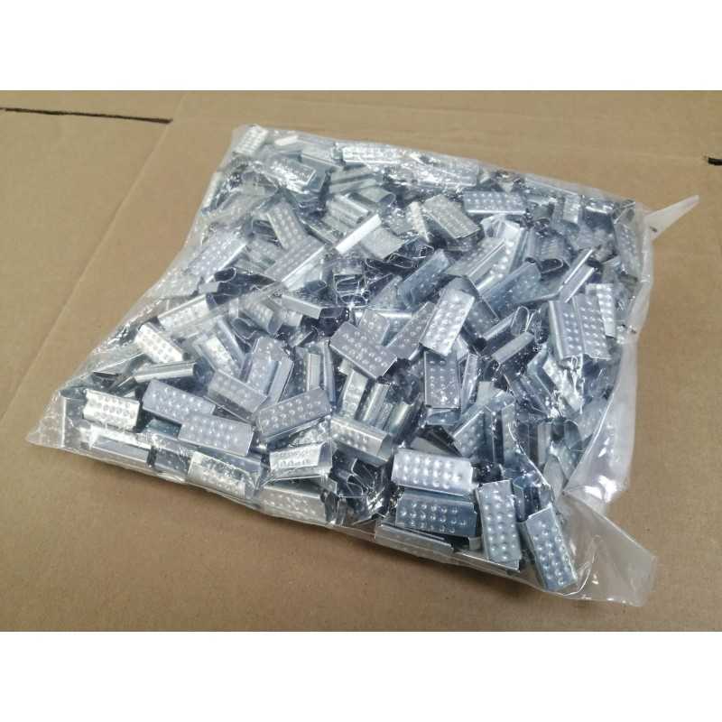 Grapas semiabiertas fabricadas en acero galvanizado metálica para amarre y fijación de zunchos plásticos.
