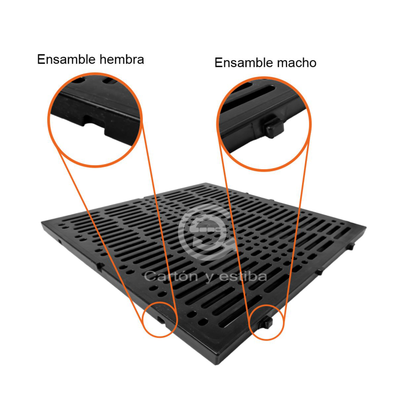 Piso plástico fabricado en polipropileno copolímero de alto impacto, con sistema de ensamble modular macho – hembra.